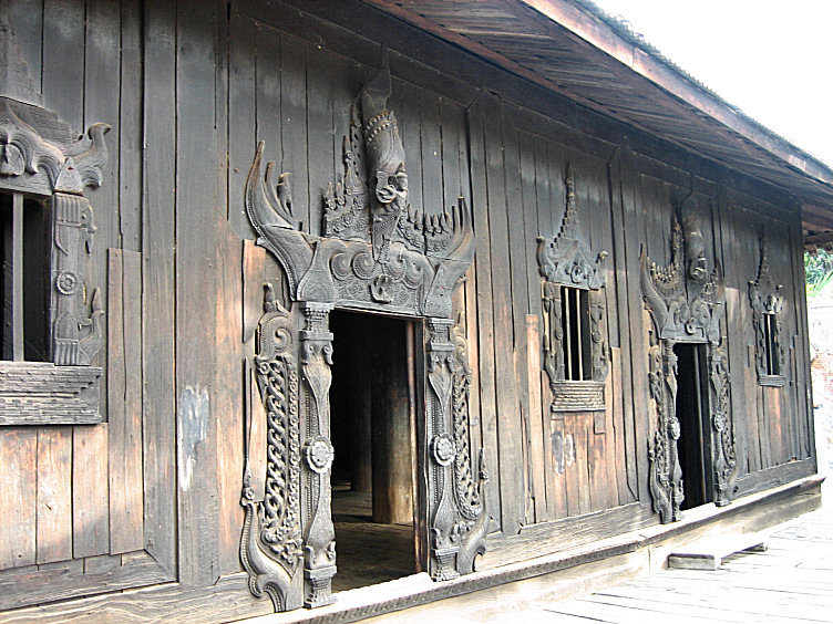 Right and below: Bagaya Monastry with its elaborate woodcarvings